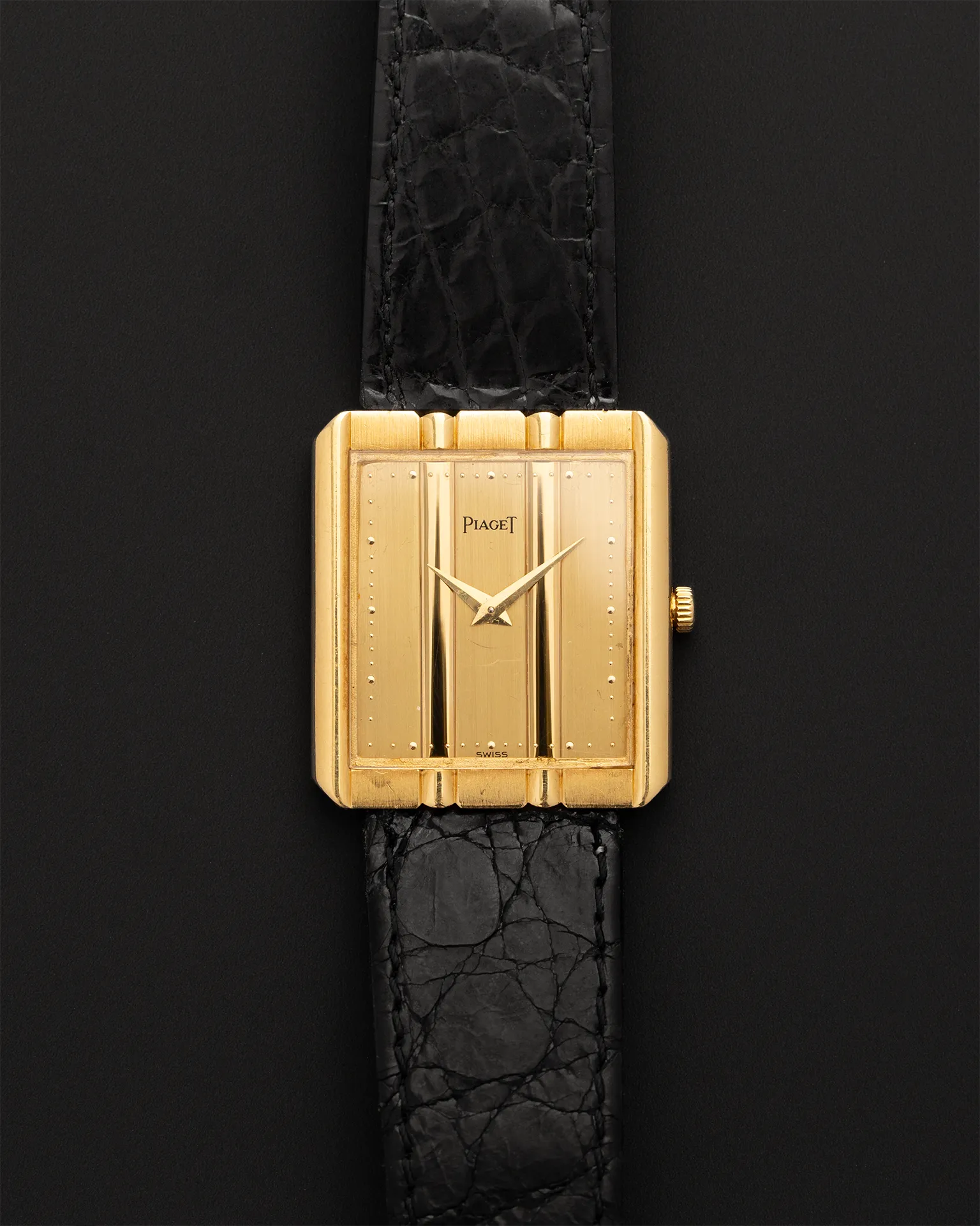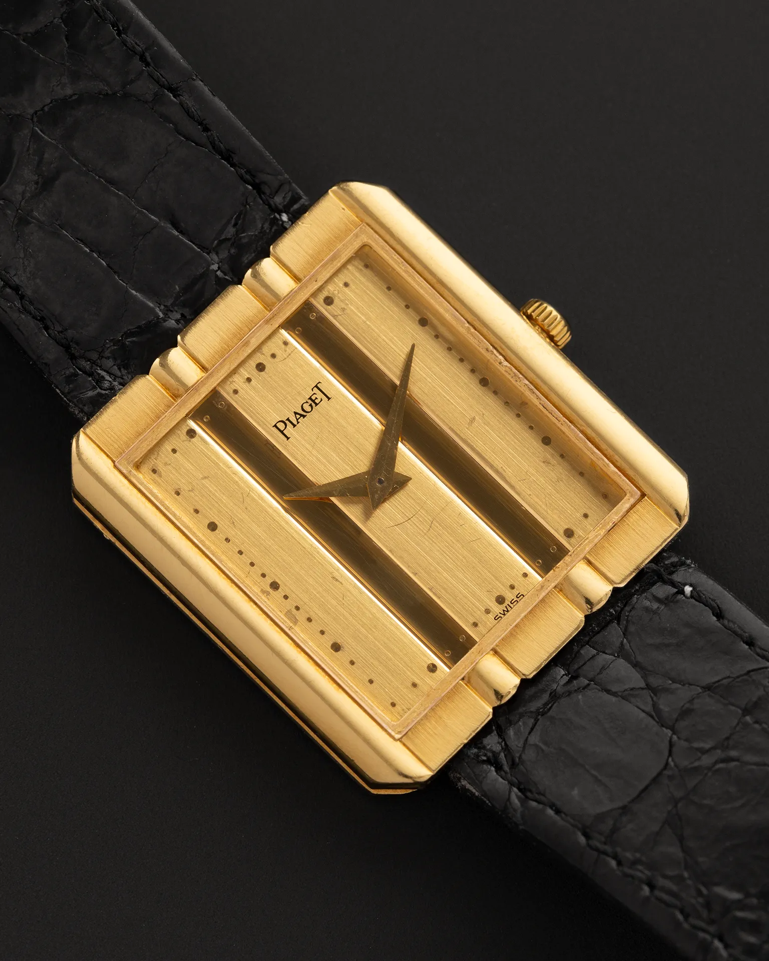 The Piaget Polo is one of those watches that captures a very specific idea of late 20th-century luxury. While the collection is best known for its emblematic integrated bracelet models, Piaget also explored more discreet and elegant interpretations of the same aesthetic language, often in solid gold and with ultra-refined proportions. Reference 8163 belongs to that world: a compact rectangular watch with the unmistakable elegance of Piaget, combining the maison’s jewelry heritage with the clean, architectural lines collectors love in vintage dress watches.