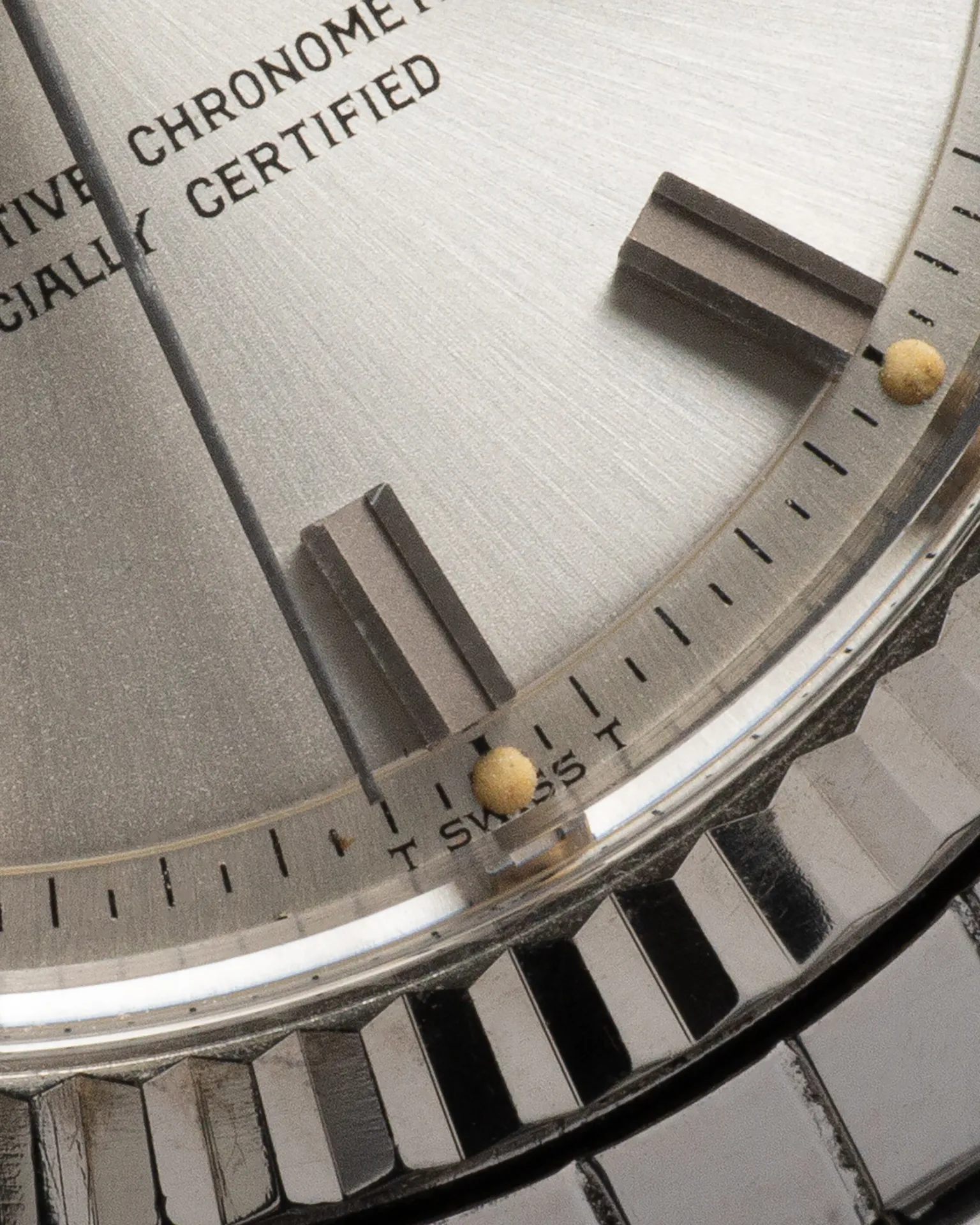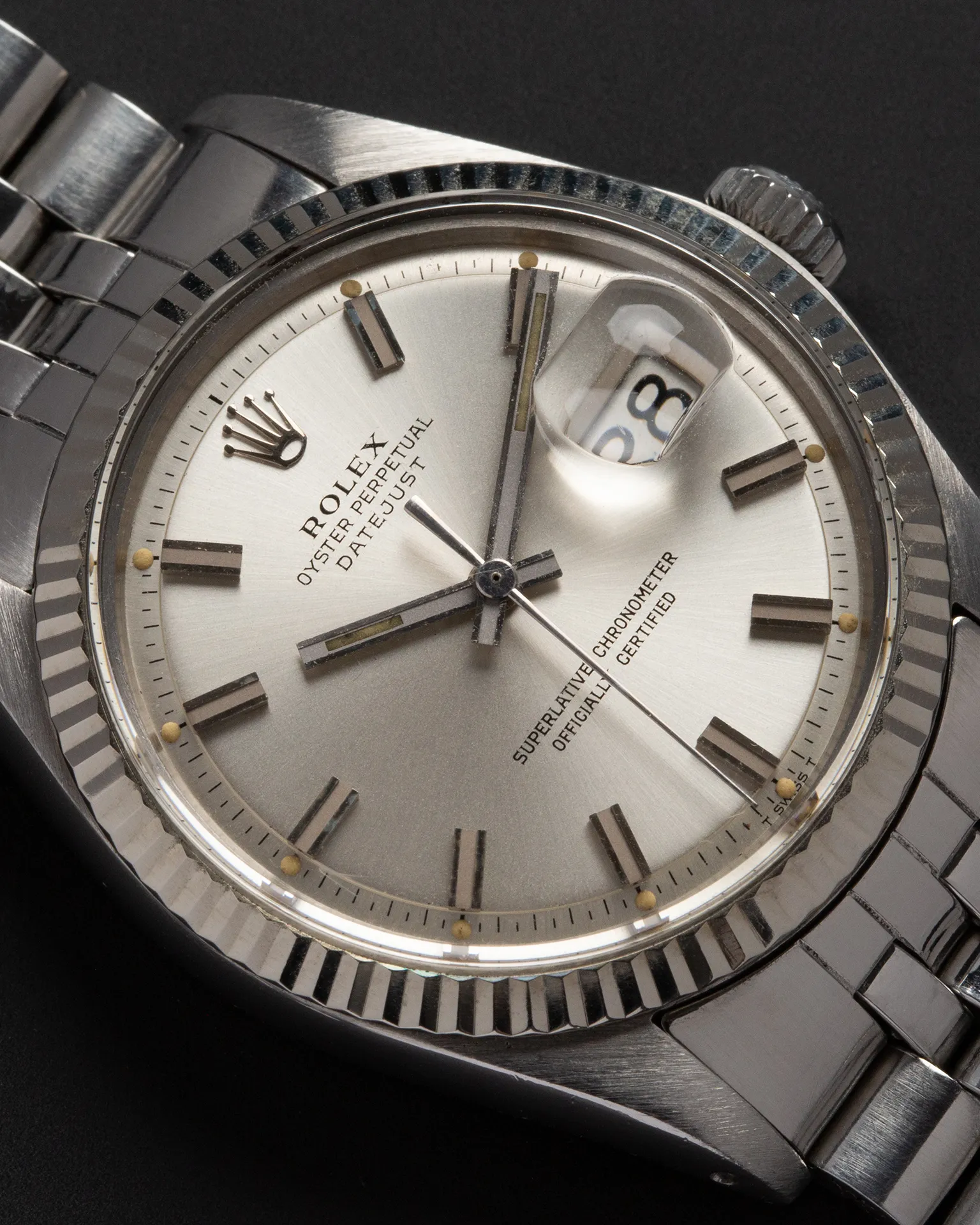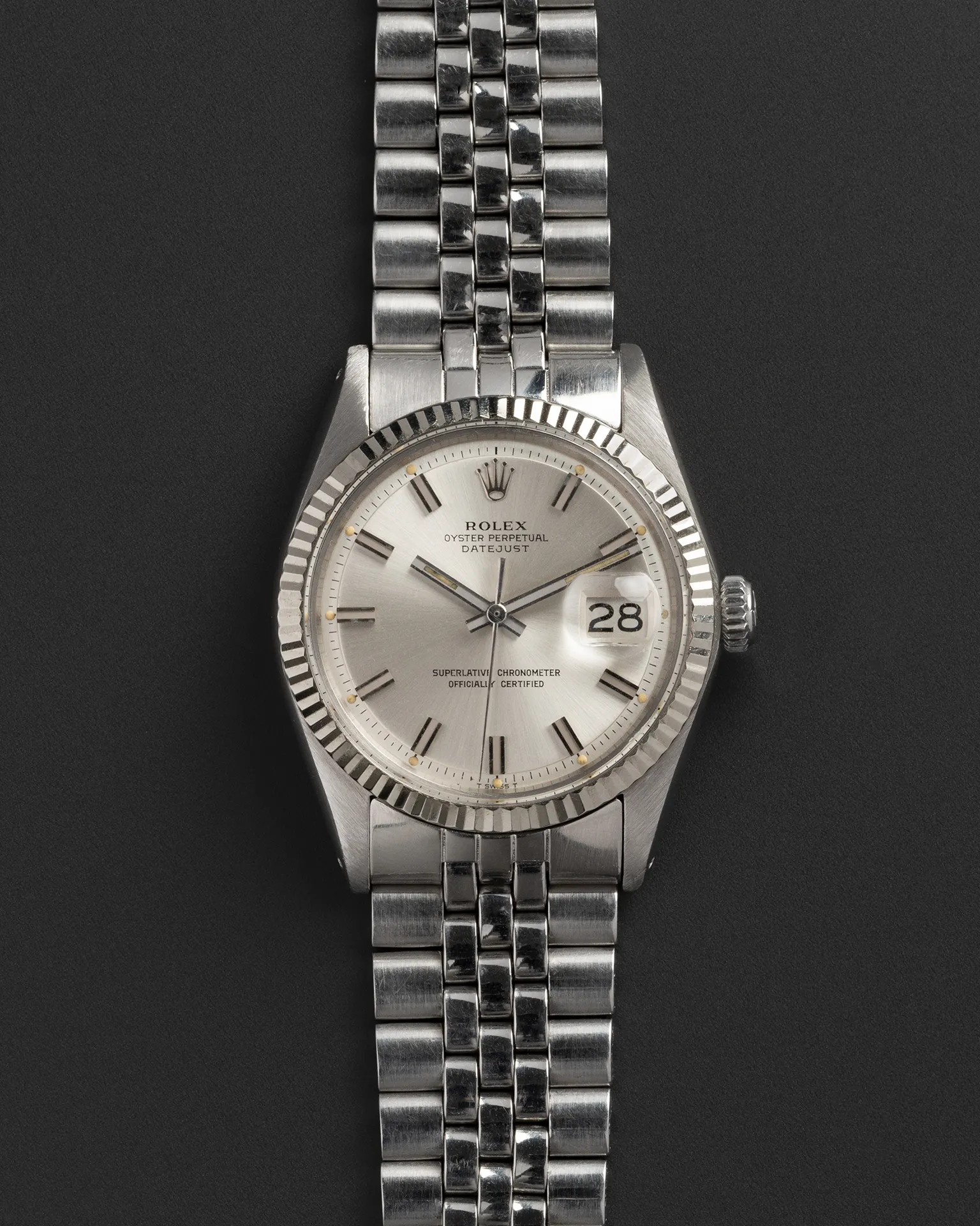 This ref. 1601 dates to 1976 and is fitted with a stunning and desirable silver Wide Boy dial in perfect condition. The lume plots show a beautiful, even aging that adds warmth and character. Overall condition is great, with the case presenting very well and a Jubilee bracelet that retains great tension, making it feel tight and confident on the wrist. A truly classic Datejust for everyday wear and an ideal starting point for any vintage watch collection.